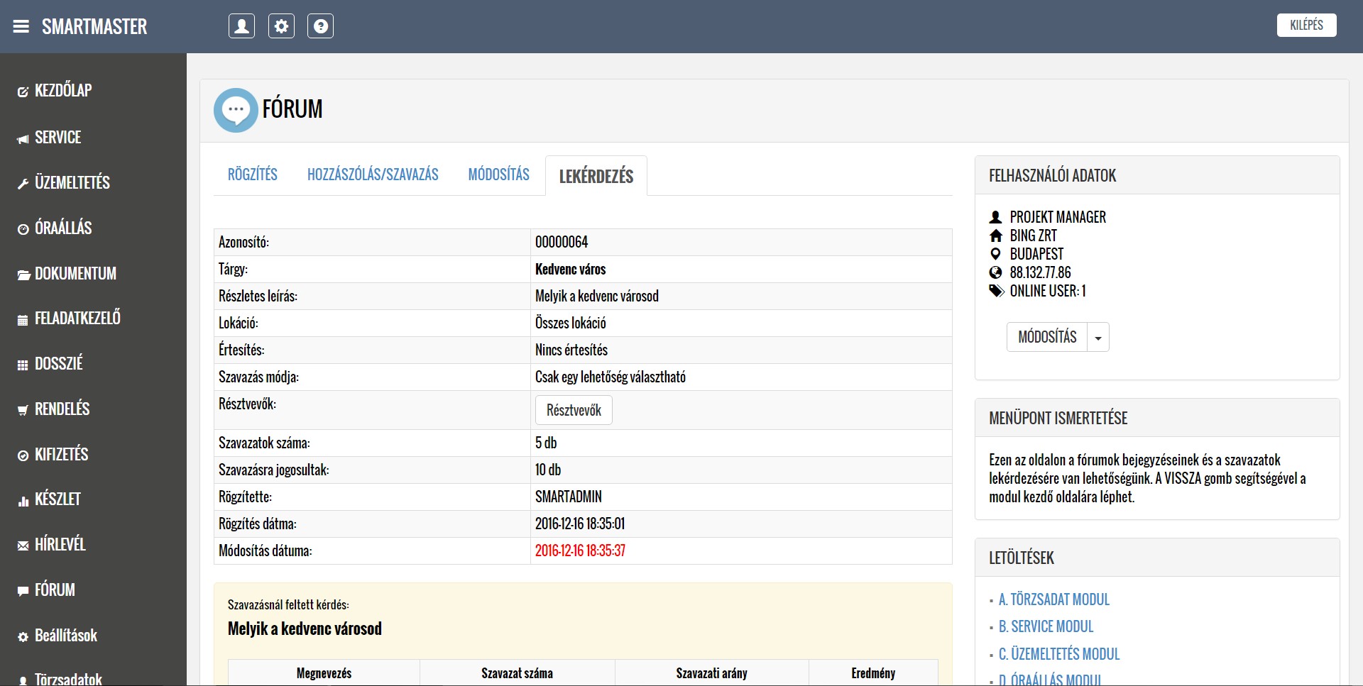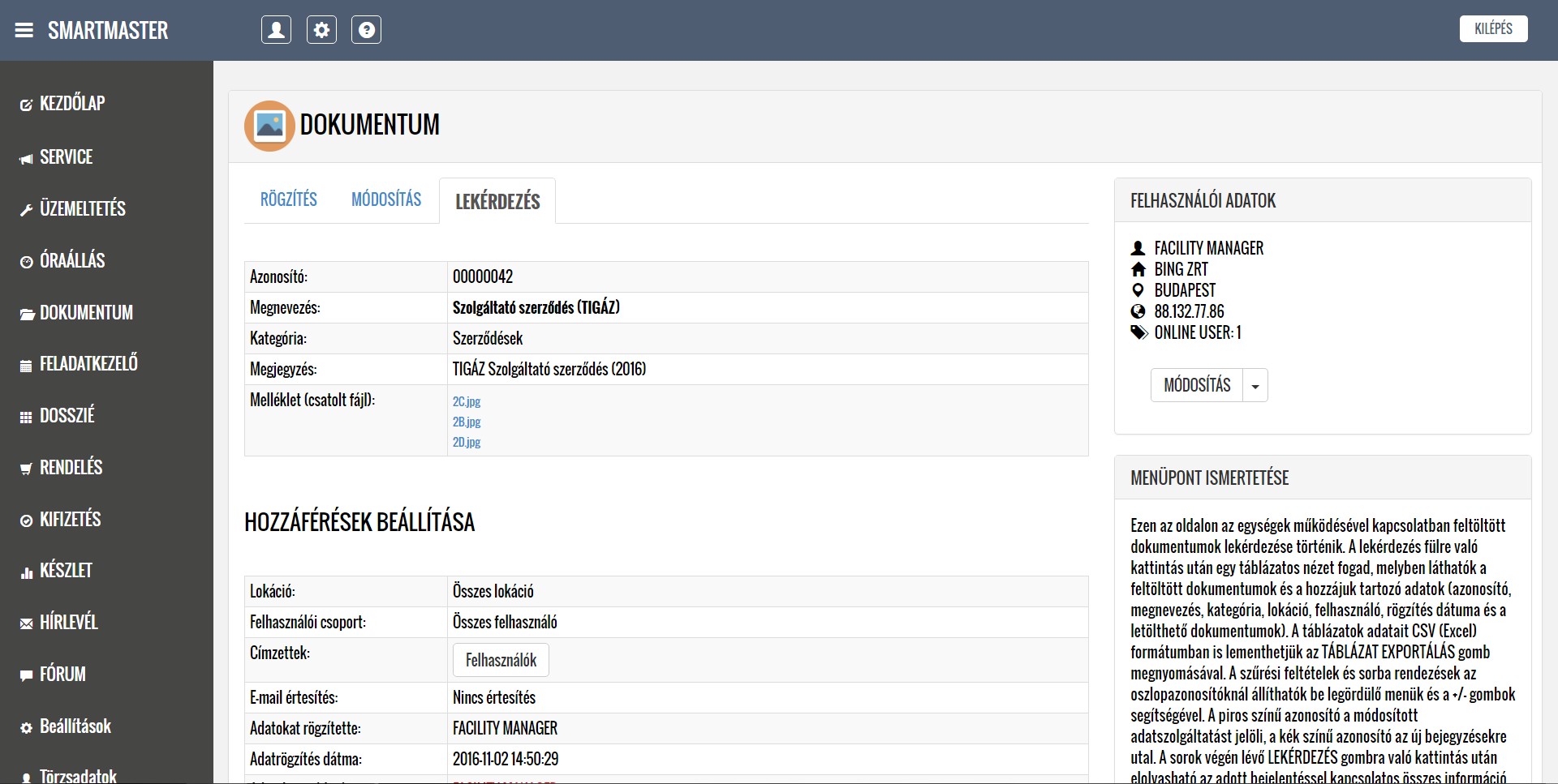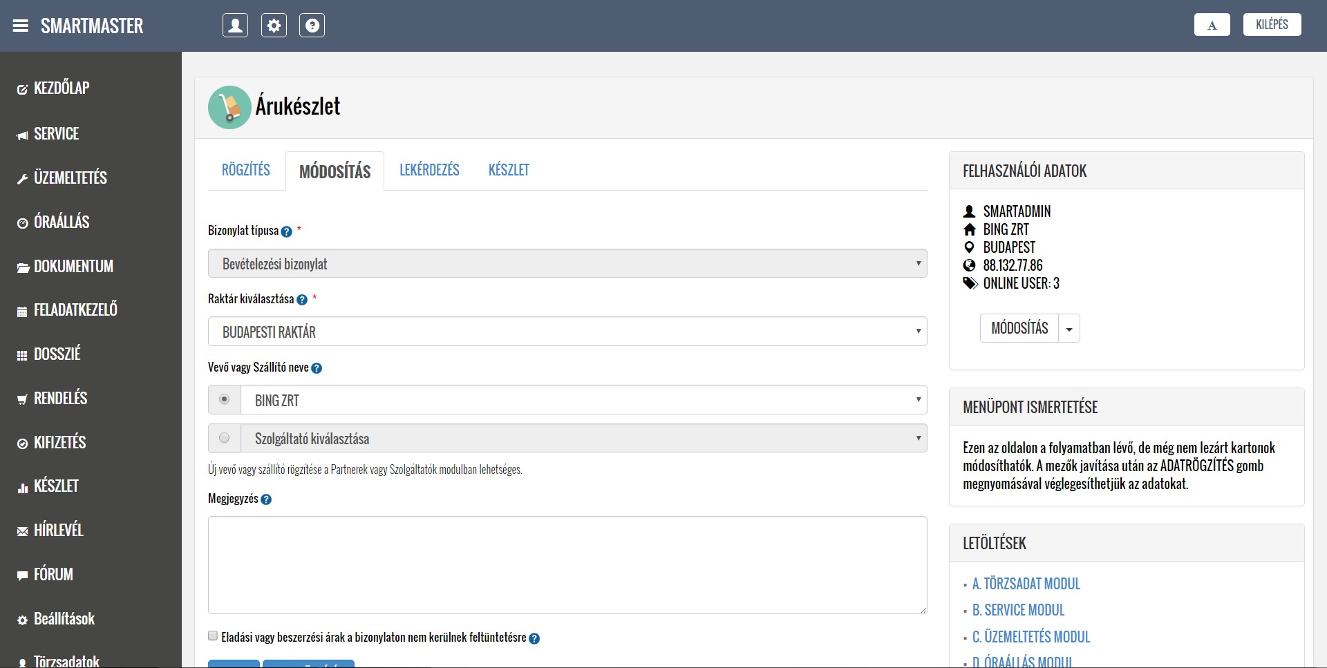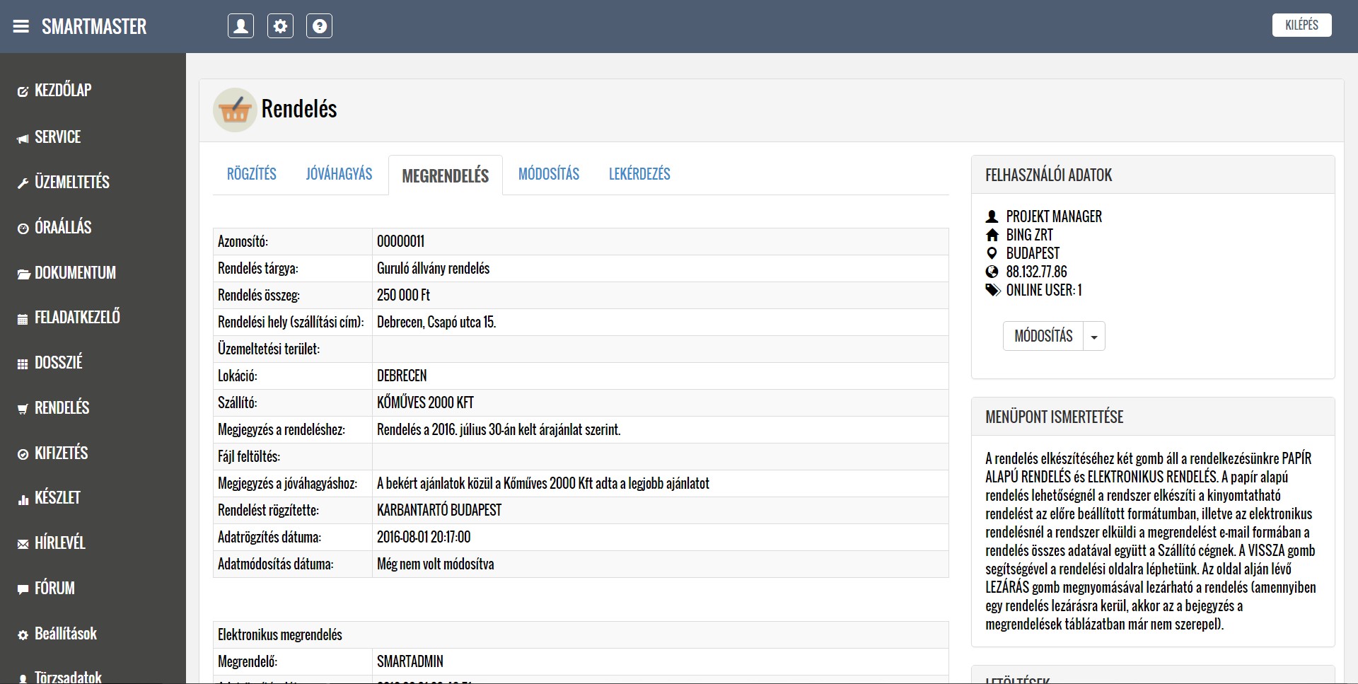 A lentiekben részletesen ismertetjük a modulok működését, a feltöltött képernyőképeken bemutatjuk a modulok menüpontjait, illetve letöltheti és elolvashatja a részletes felhasználói kézikönyveket. Köszönjük, hogy időt szakít az alkalmazásunk megismerésére, mely használata a jövőbeni munkáját nagymértékben megkönnyítheti. További kérdések esetén kollégáink szívesen állnak rendelkezésére a kapcsolati űrlap kitöltését, illetve közvetlen telefonos megkeresés esetén.