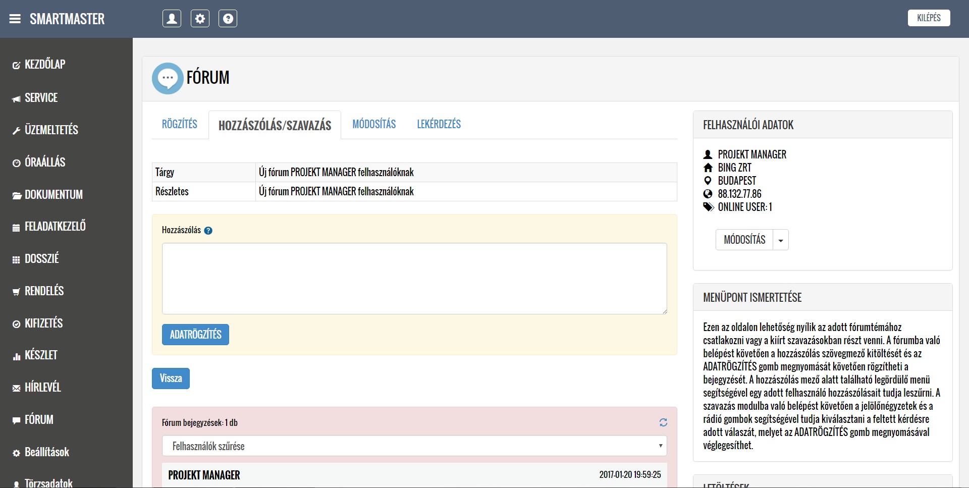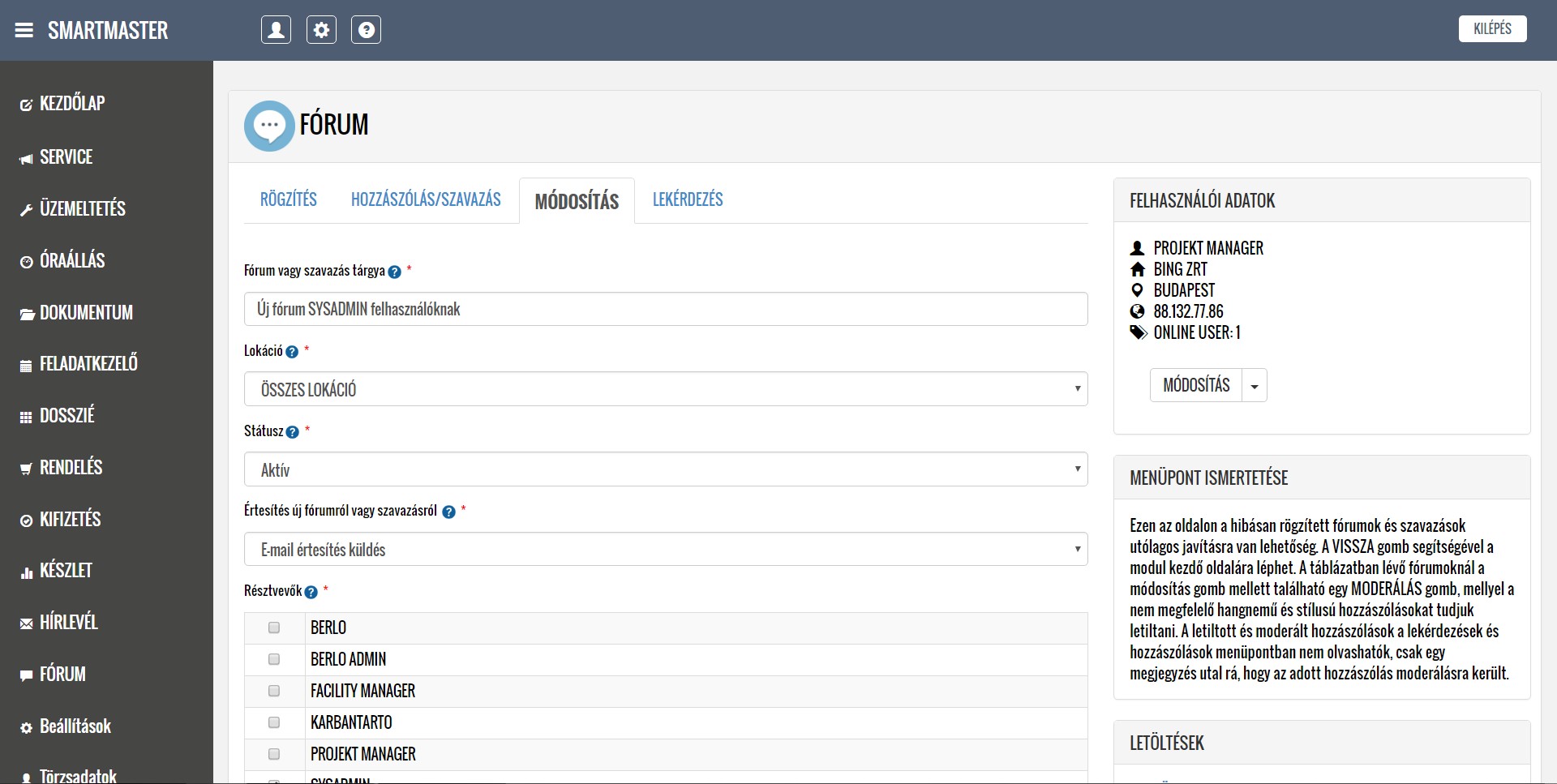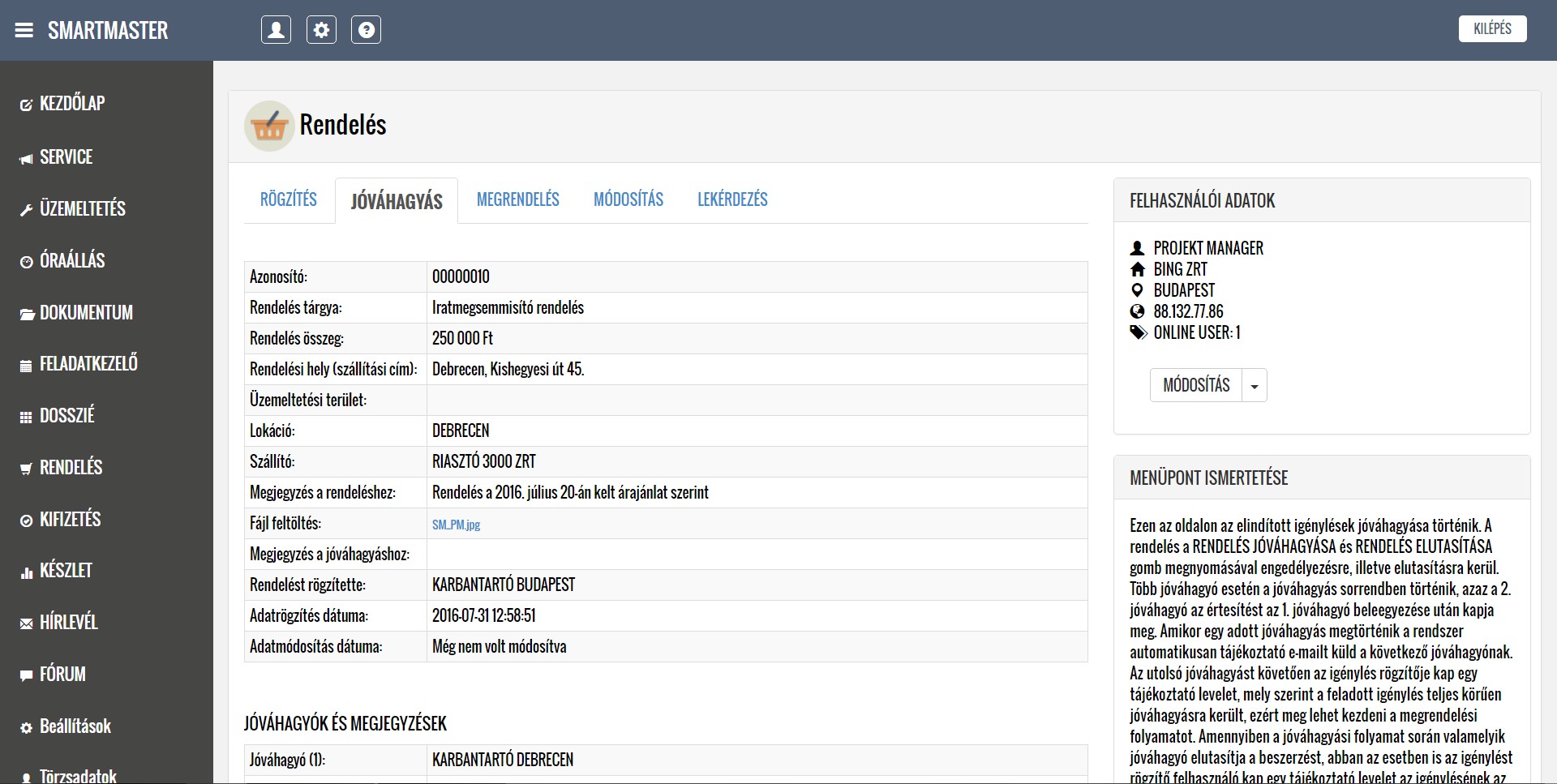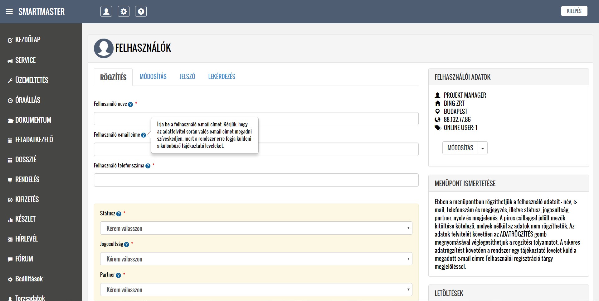 A lentiekben részletesen ismertetjük a modulok működését, a feltöltött képernyőképeken bemutatjuk a modulok menüpontjait, illetve letöltheti és elolvashatja a részletes felhasználói kézikönyveket. Köszönjük, hogy időt szakít az alkalmazásunk megismerésére, mely használata a jövőbeni munkáját nagymértékben megkönnyítheti. További kérdések esetén kollégáink szívesen állnak rendelkezésére a kapcsolati űrlap kitöltését, illetve közvetlen telefonos megkeresés esetén.
