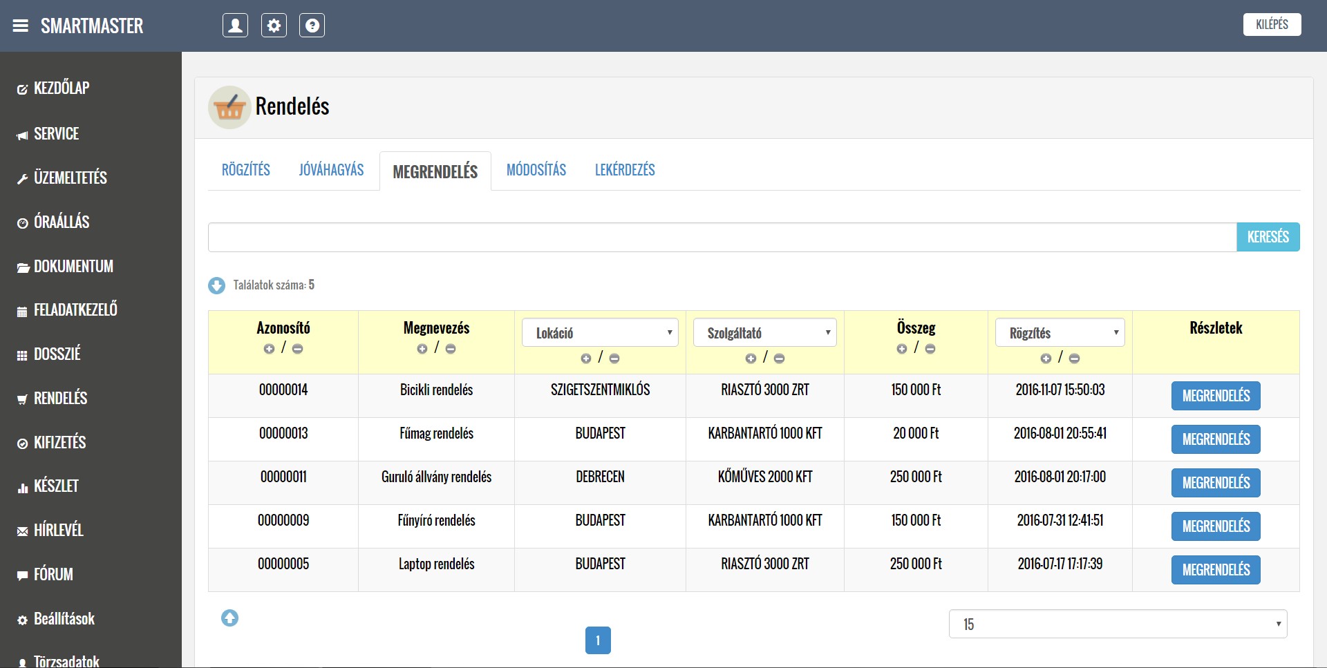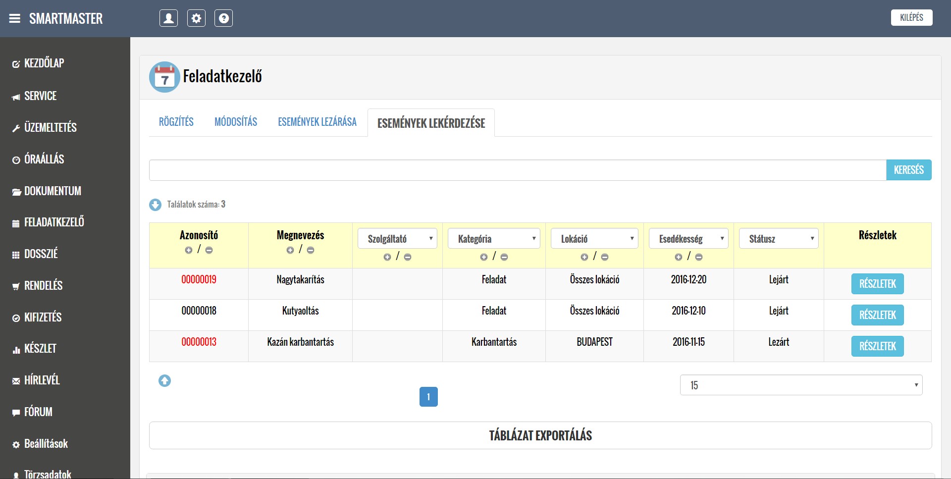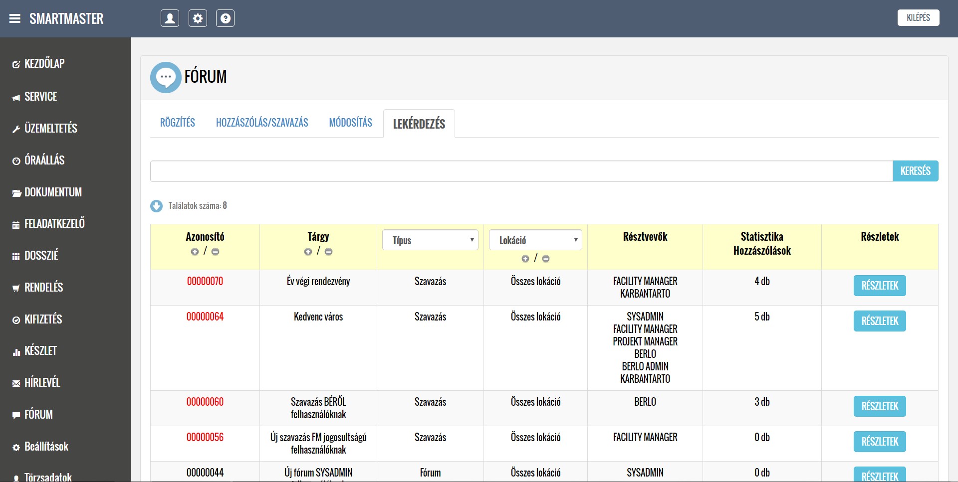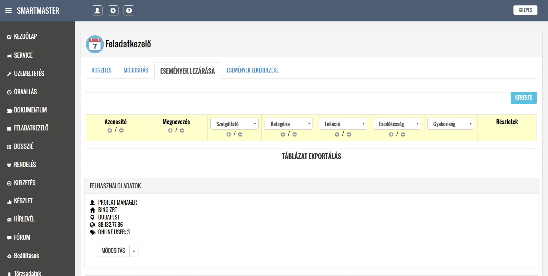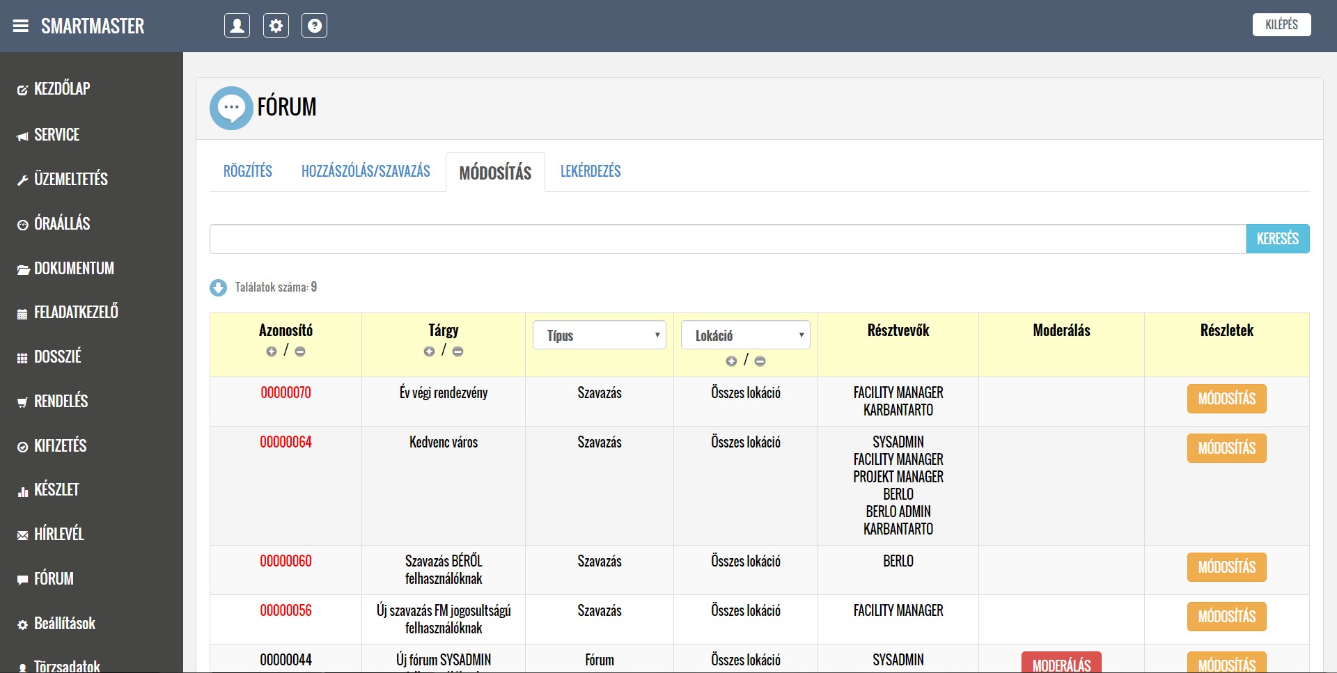 A rendszer segítségével kezelni tudják a lokációkból érkező hibabejelentéseket, ütemezik és dokumentálják a karbantartási feladatokat, illetve nyilván tartják a közüzemi mérőórák fogyasztásait