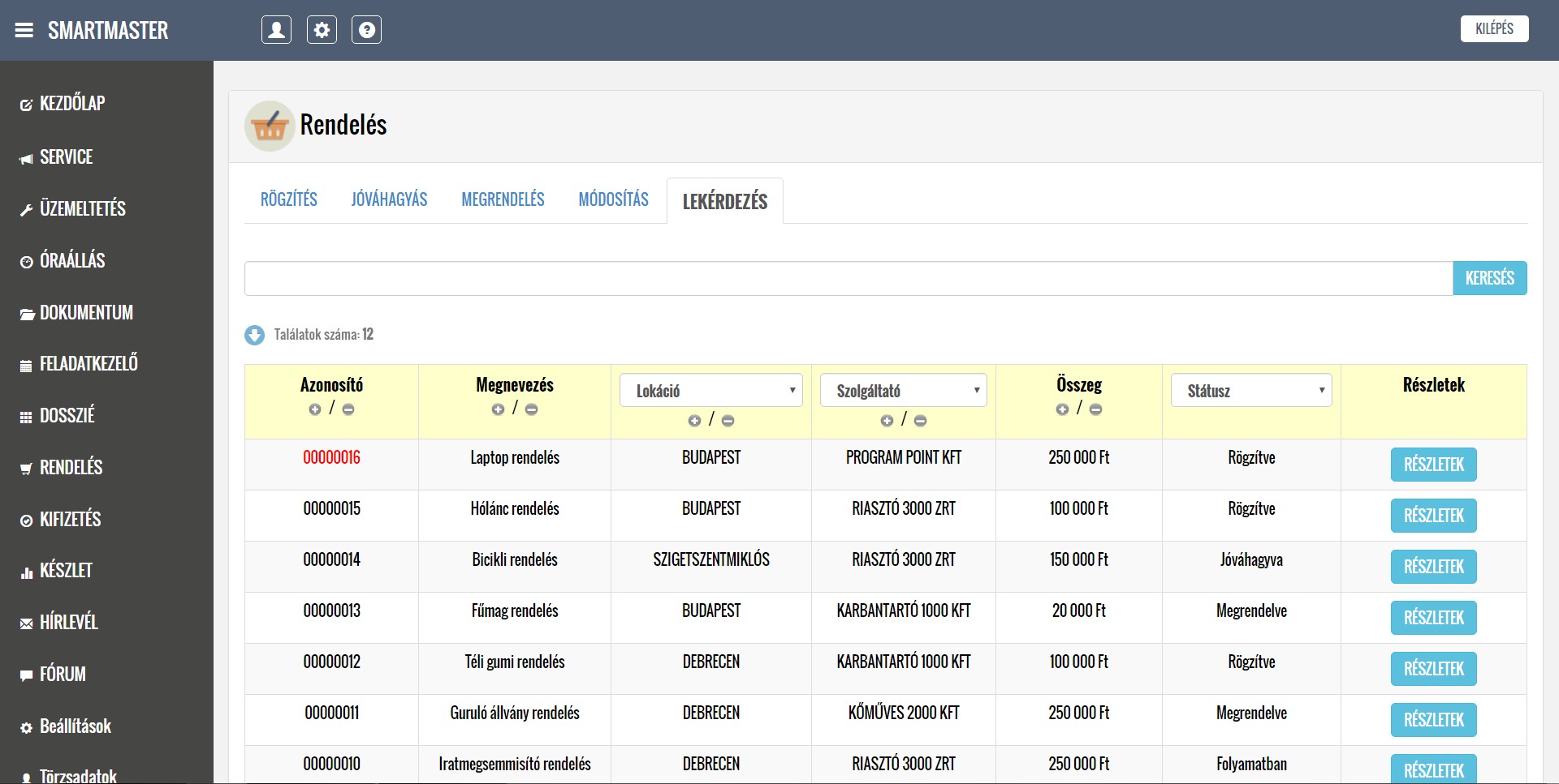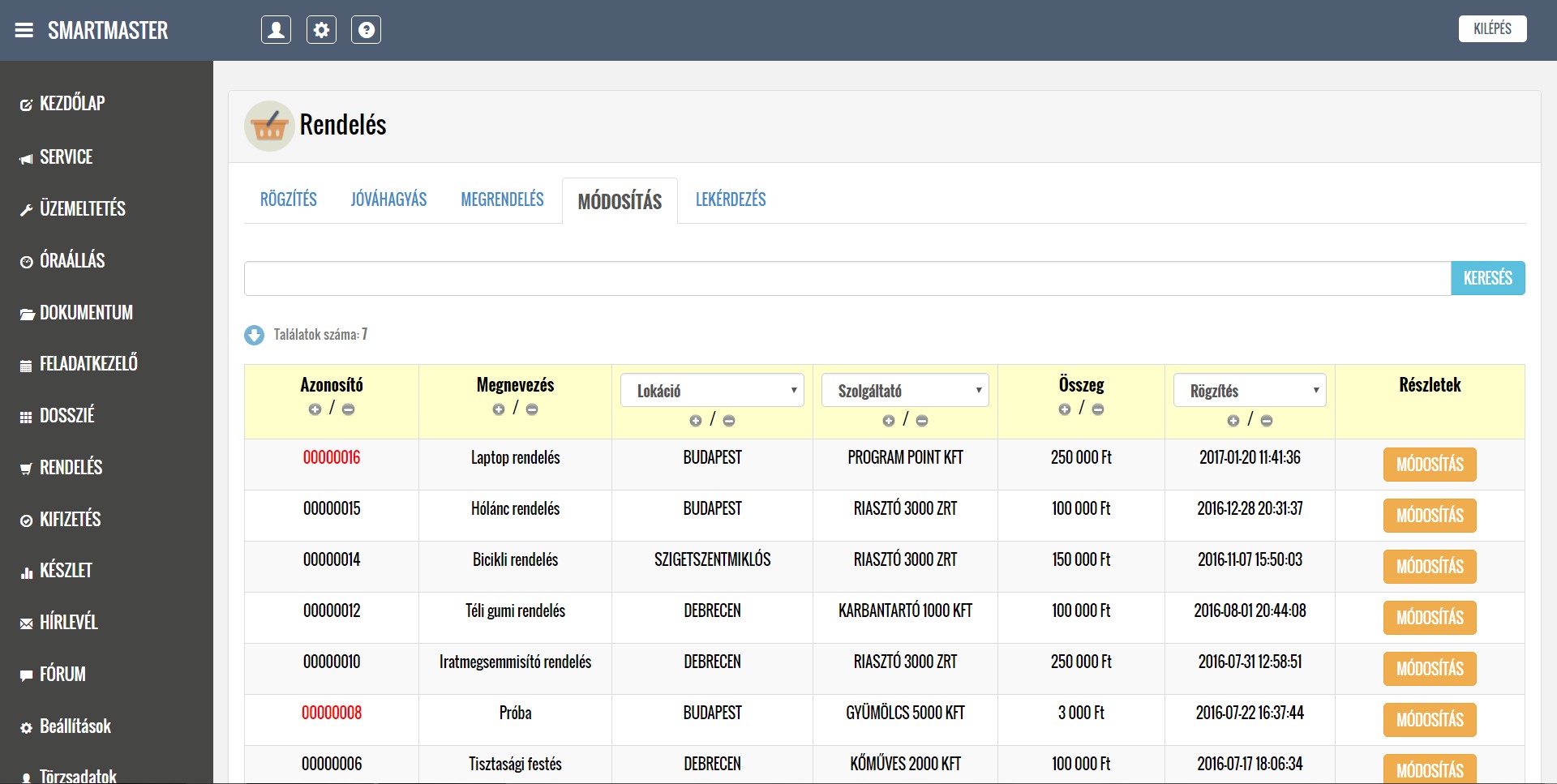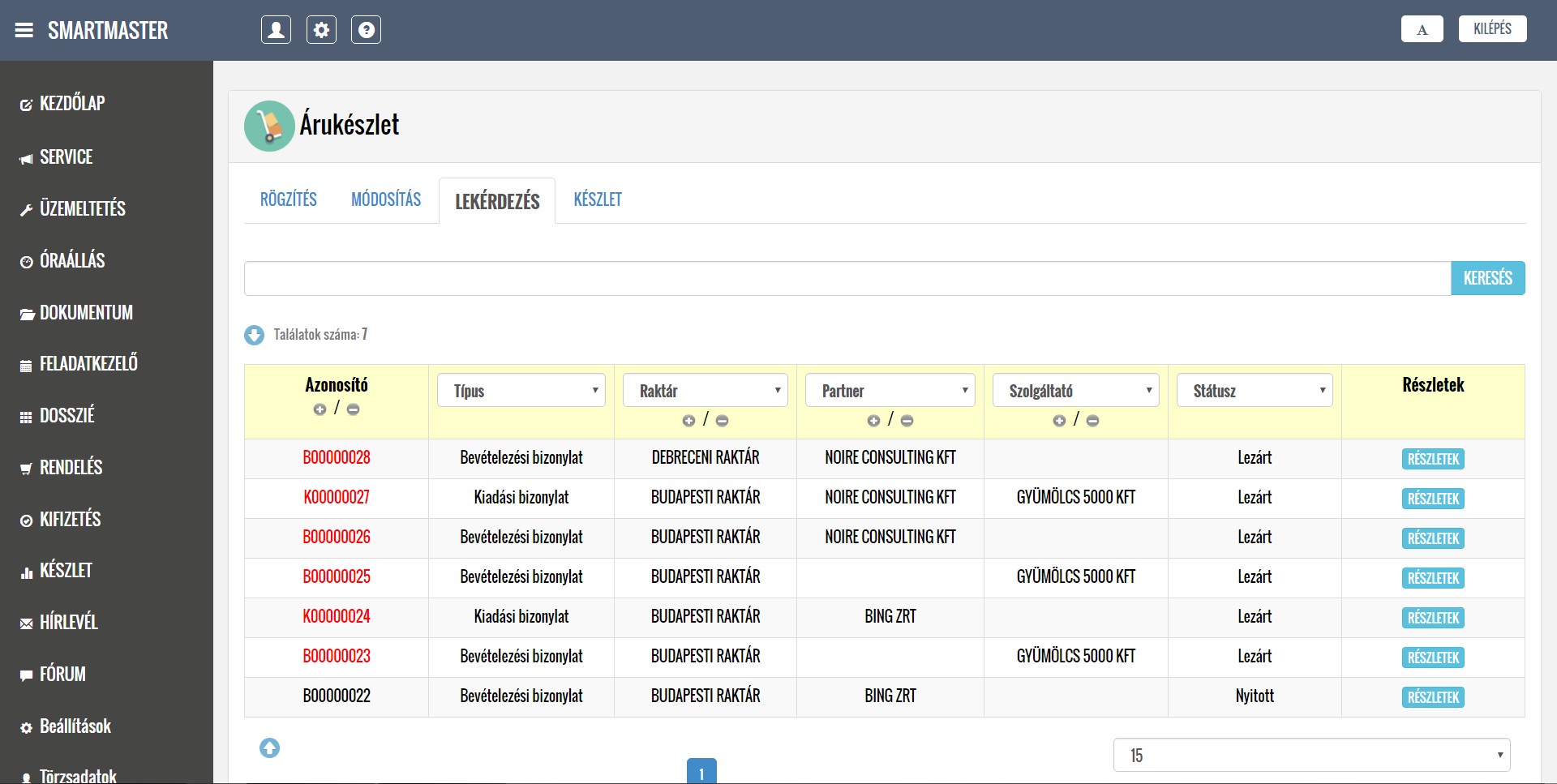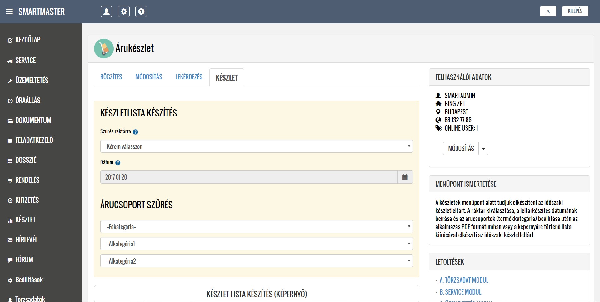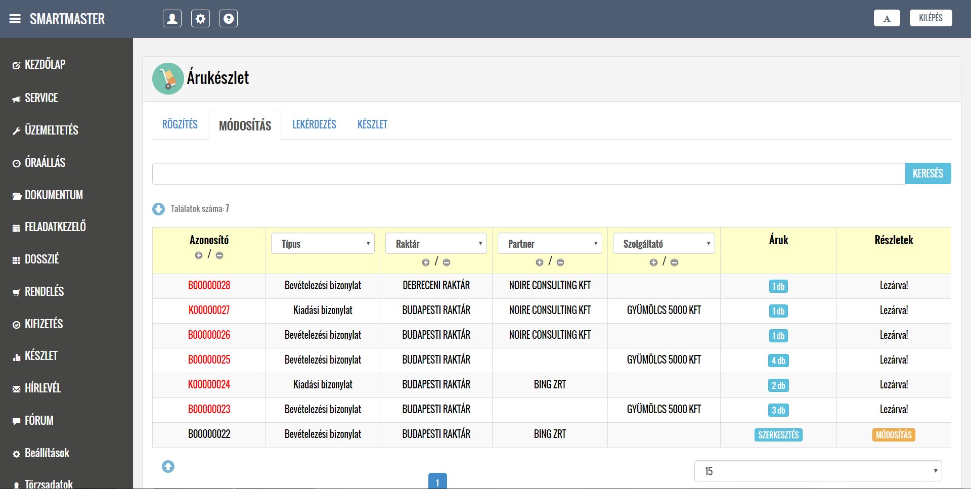 DEMO alkalmazásban elérhető üzleti modulok (7/4)